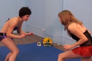 The second battle - archive video. Dallas vs Morgana. Two bouts of three rounds. In the first match, girl need to pin the rival to the mat, in the second - to force to surrender. This was Dallas' debut in this kind of fight.